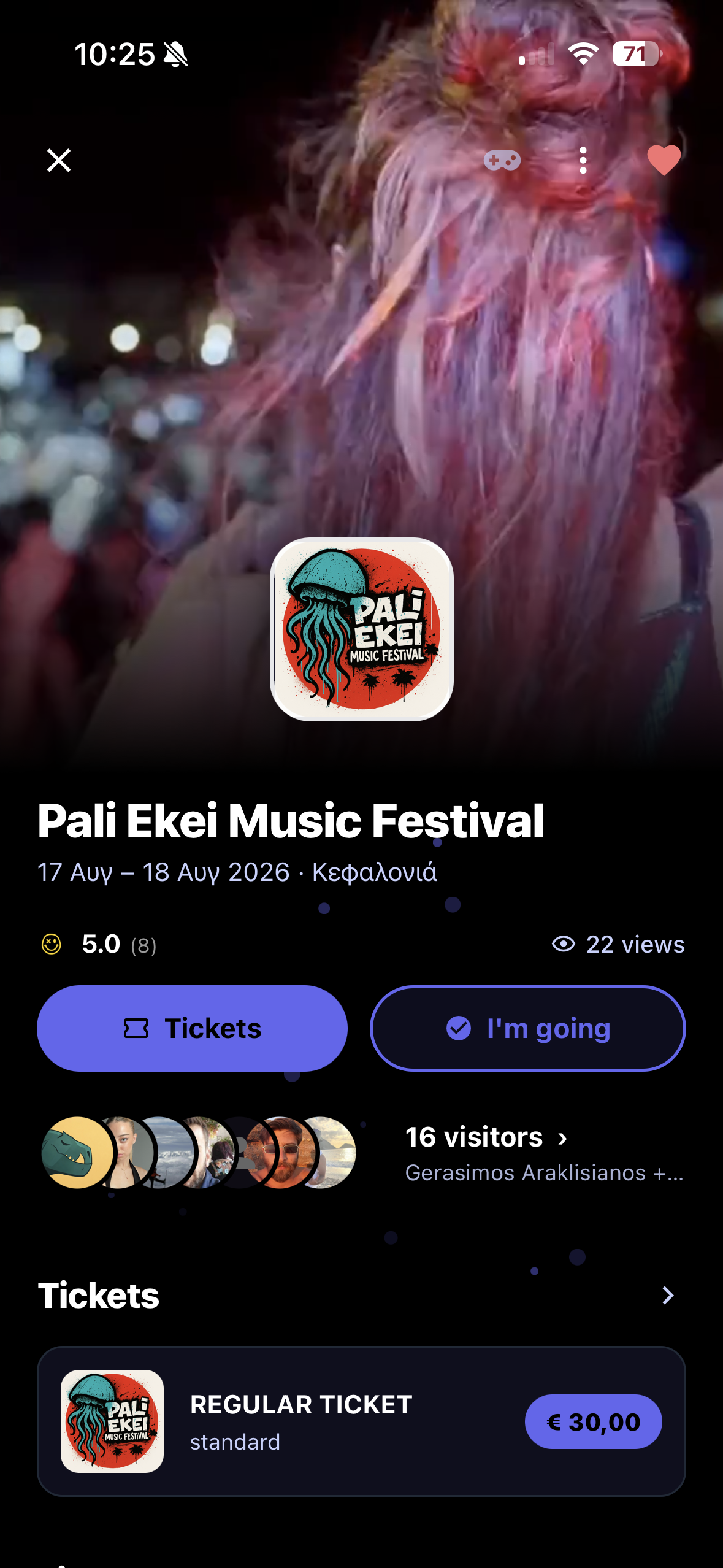 QR code profile, followers, attended festivals, calendar sync with reminders — all in one place.