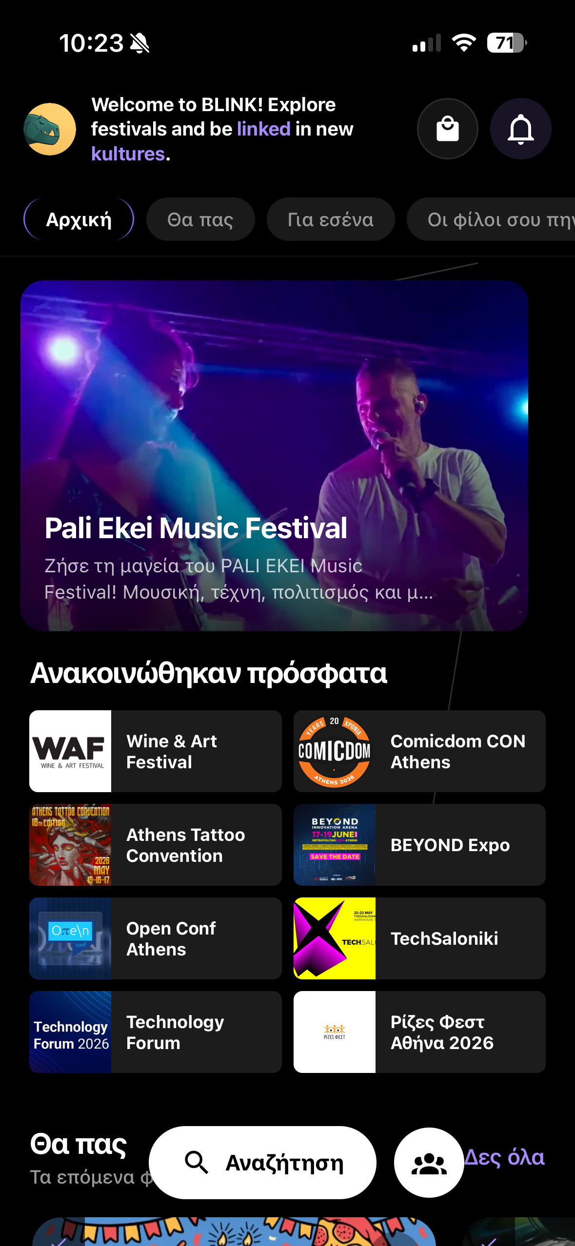 Follow people, discover who's attending which festival, send Blinks and connect with everyone near you.